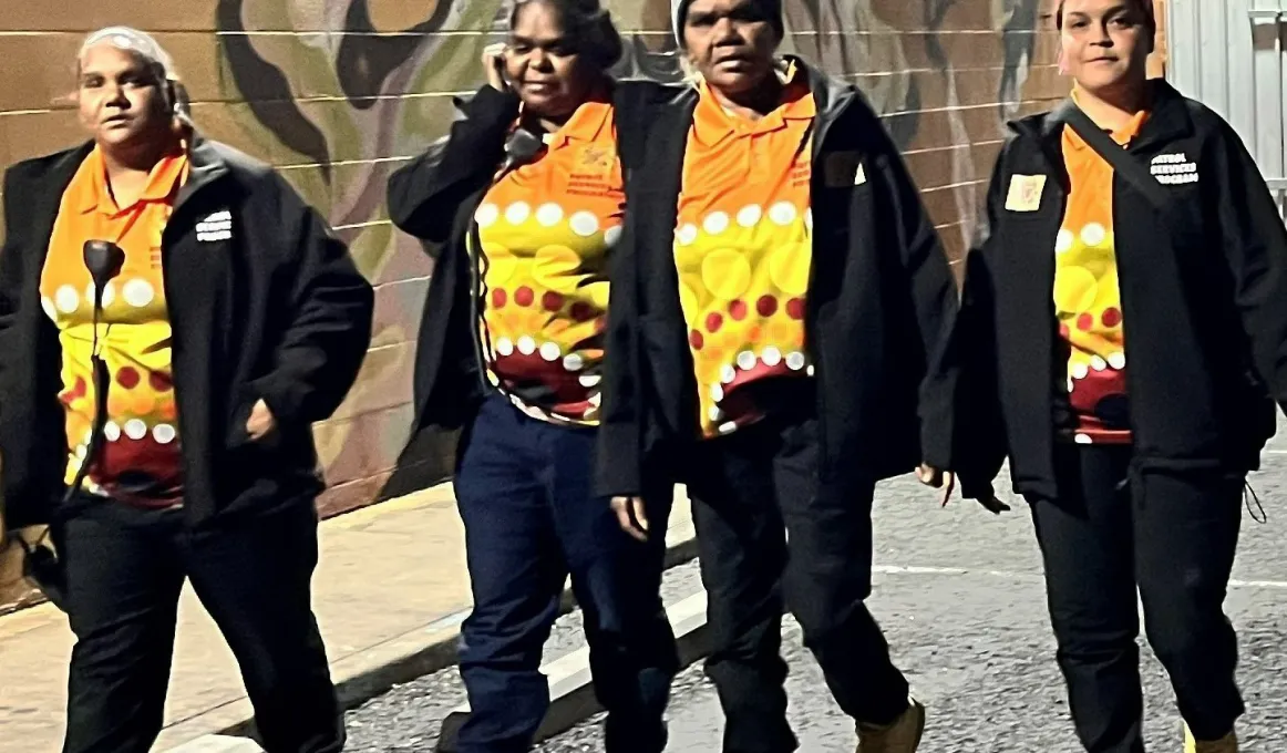 It’s a cool night in Mparntwe (Alice Springs) as Arrernte men and women gather at the office of the Lhere Artepe Aboriginal Corporation. Dressed in bright orange shirts, the Lhere Artepe logo front and centre, they come together as the Traditional Owner Community Patrol ready for another night patrol on the streets of Mparntwe.