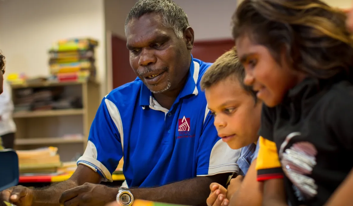 One of the many programs that have helped to improve educational outcomes is a partnership with the Mirndiyan Gununa Arts Centre, which supports community elders to teach culture and language in the school.