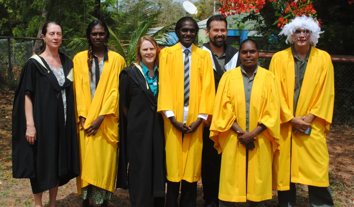 The first two Indigenous Learning on Country students recently graduated at a Batchelor Institute award ceremony held in Yirrkala, North East Arnhem Land.
