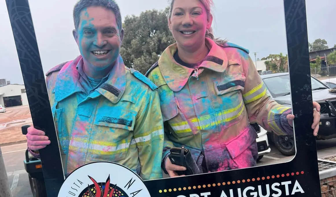 As part of bringing the community together, Dre invited emergency services and community businesses to help throw around the colours.